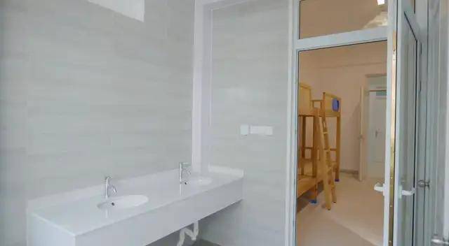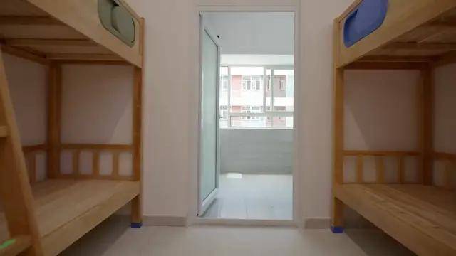 宿舍还有个小阳台,里面有洗漱台,对面是卫生间。