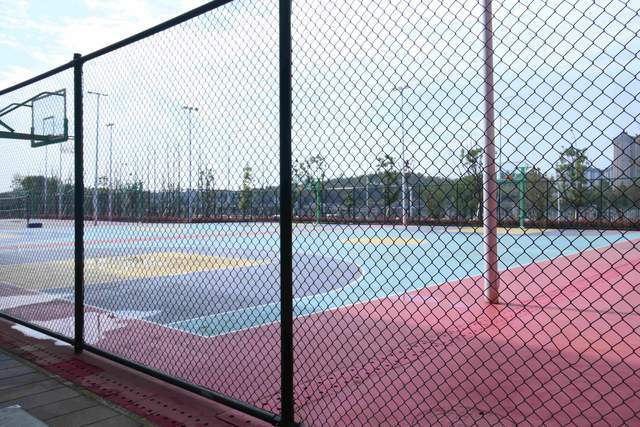 从宿舍出来,两栋宿舍楼后面是篮球场,场地很大,数量也多。