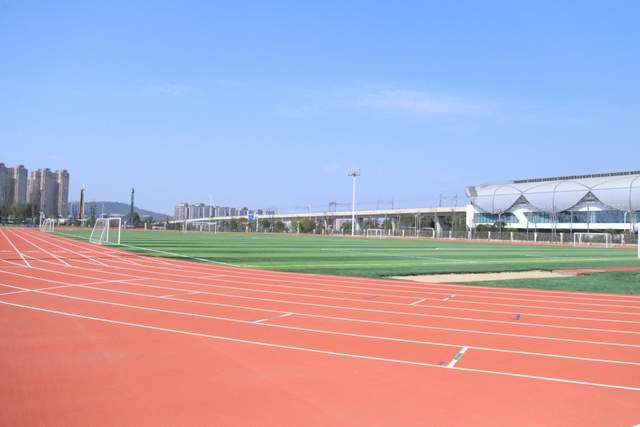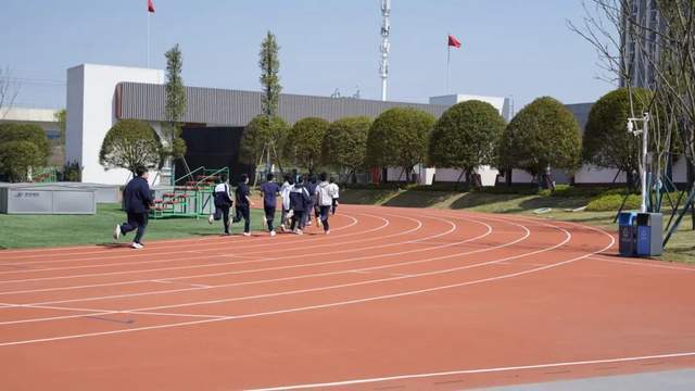 体育场靠近教学楼一侧都是看台,我们到的时候正好有很多一中学生在上体育课。