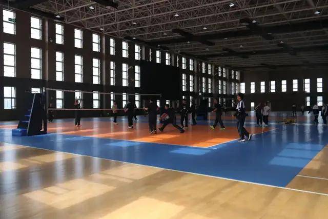 由于错层结构,体育馆的大门入口在上层的树人大道,整个场馆相当大,有不少学生正在上排球课。