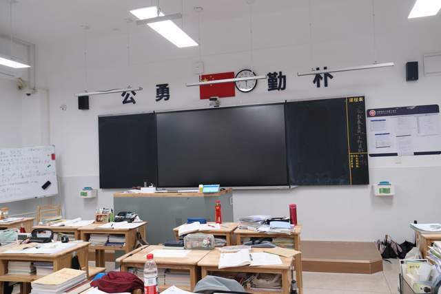 进入教室可以看到,黑板采用的是多媒体和传统黑板结合的形式,中间有一块很大的屏幕。