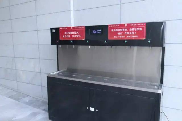 体育场角落有饮水机,方便上体育课的同学来接水喝。