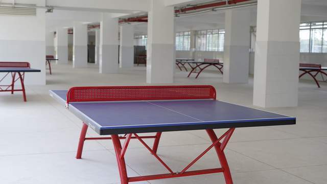 惜时居是男生宿舍,一楼是架空层,放了很多乒乓球台。