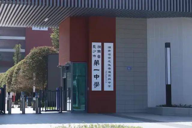 校门口除了右边挂了长沙一中的牌子,左边还有湘江新区湘江中学的牌子。