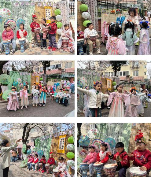 落英缤纷,春意盎然,孩子们身着汉服,吟诵《春晓》、《咏柳》、《村居》等春日诗词,配以鼓乐节奏翩然起舞。樱花为幕,诗韵为弦,童声与乐声交织,演绎出“诗中有乐,乐中有诗”的灵动画面。