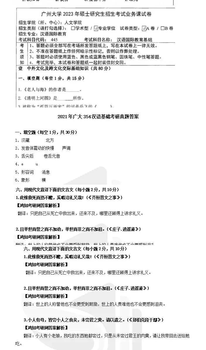 2011-2021年广州大学445汉语国际教育基础考研真题参考答案