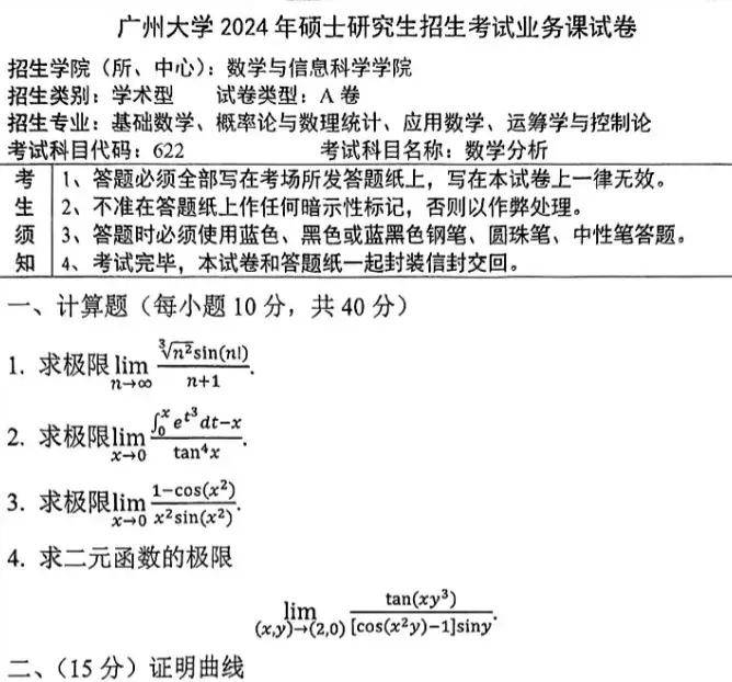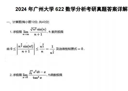 2011-2024年广州大学622数学分析考研真题参考答案【没有25答案】