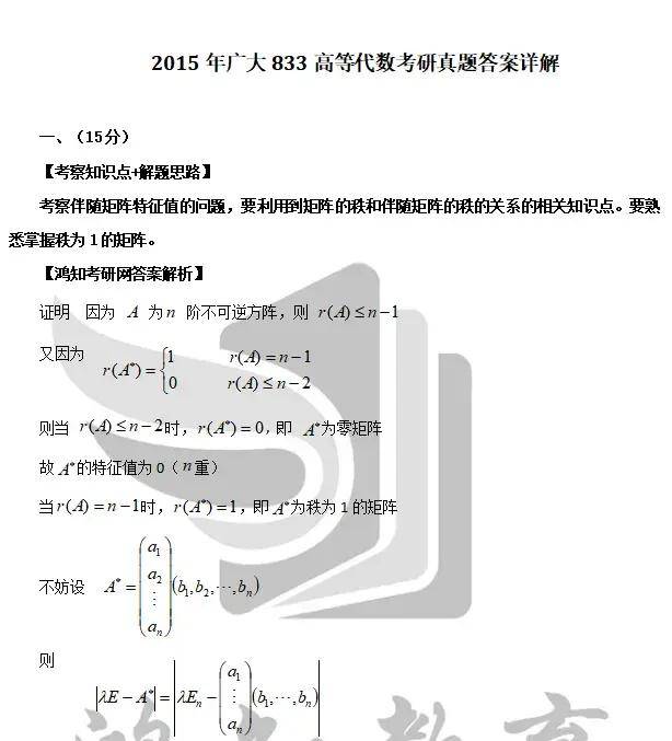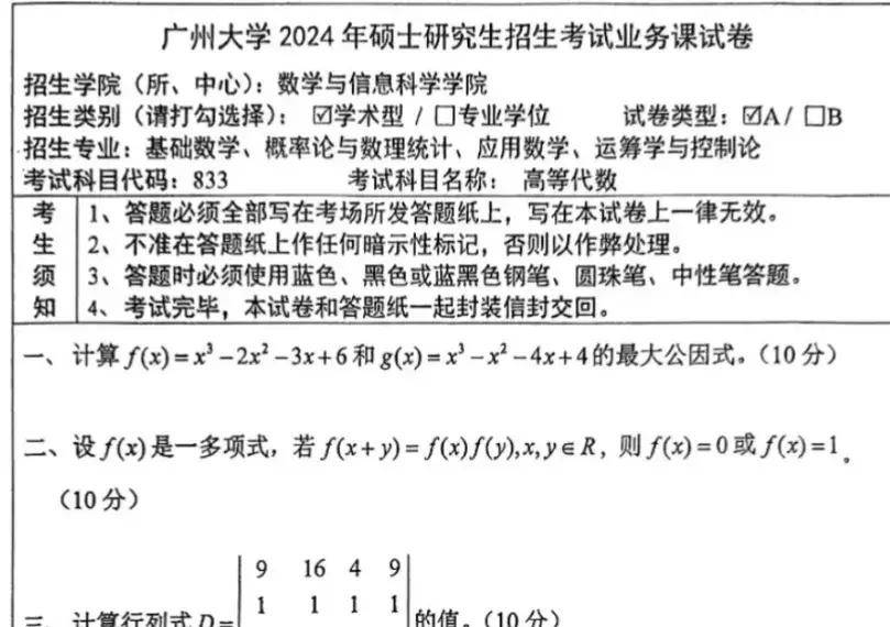2011-2024年广州大学833高等代数考研真题参考答案【没有25答案】