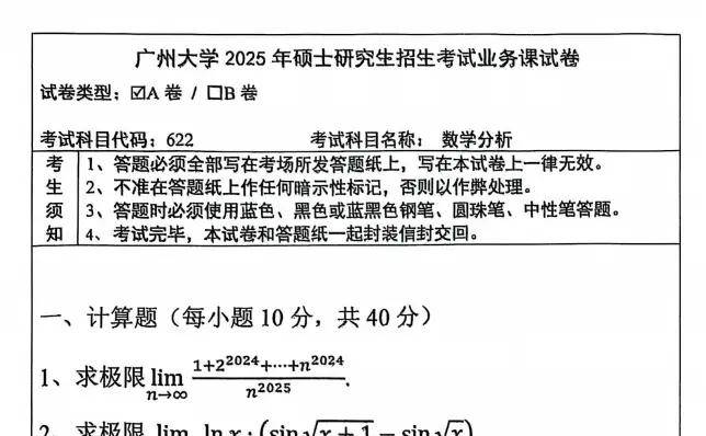 2004-2008,2010-2025年广州大学622数学分析考研真题试卷【数学学硕】