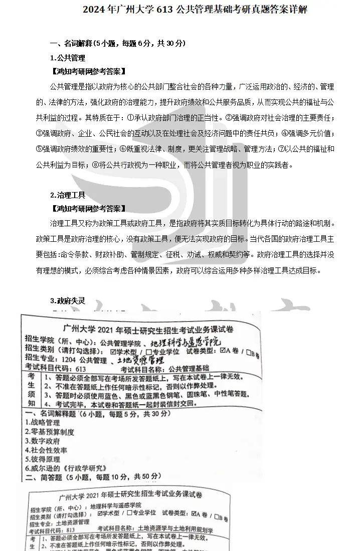 2012-2025年广州大学613公共管理基础考研真题参考答案