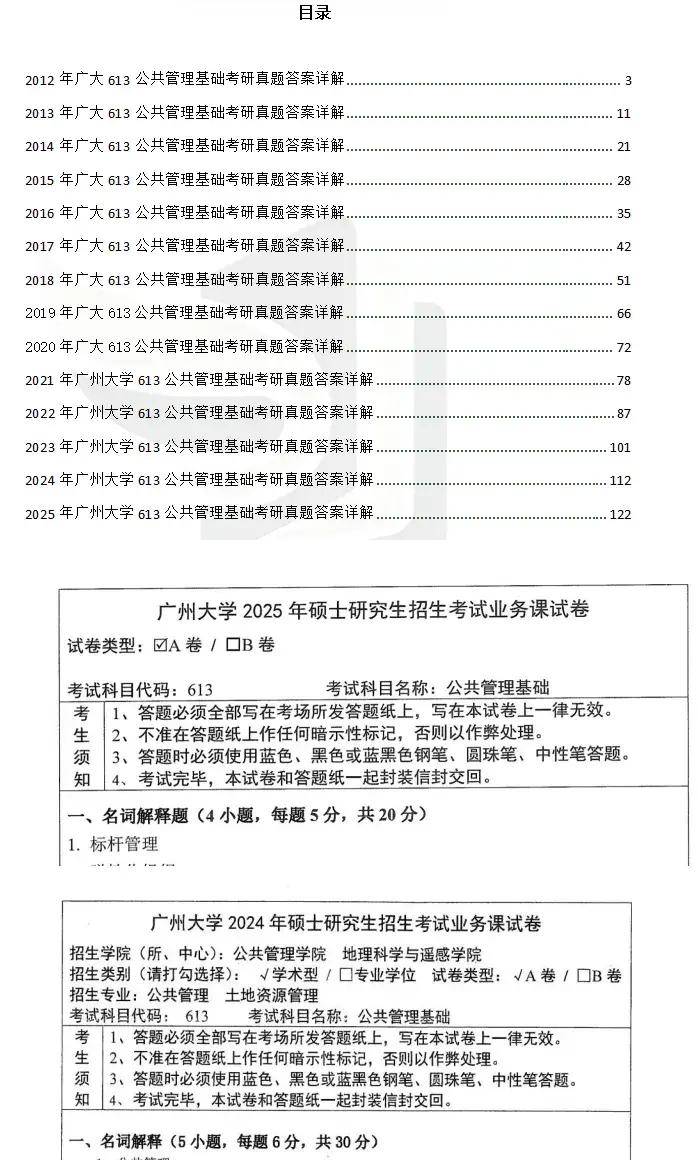 2012-2025年广州大学613公共管理基础考研真题试卷