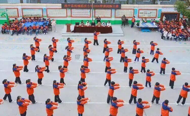 春风送暖,活力飞扬。为进一步丰富校园文体生活,增强学生体质,展现班级积极向上的精神风貌,2026年4月3日,西平县柏城邵庄小学举行了课间操比赛。三至六年级的同学们精神饱满,意气风发,在运动场上尽情绽放属于新时代少年的蓬勃光彩。