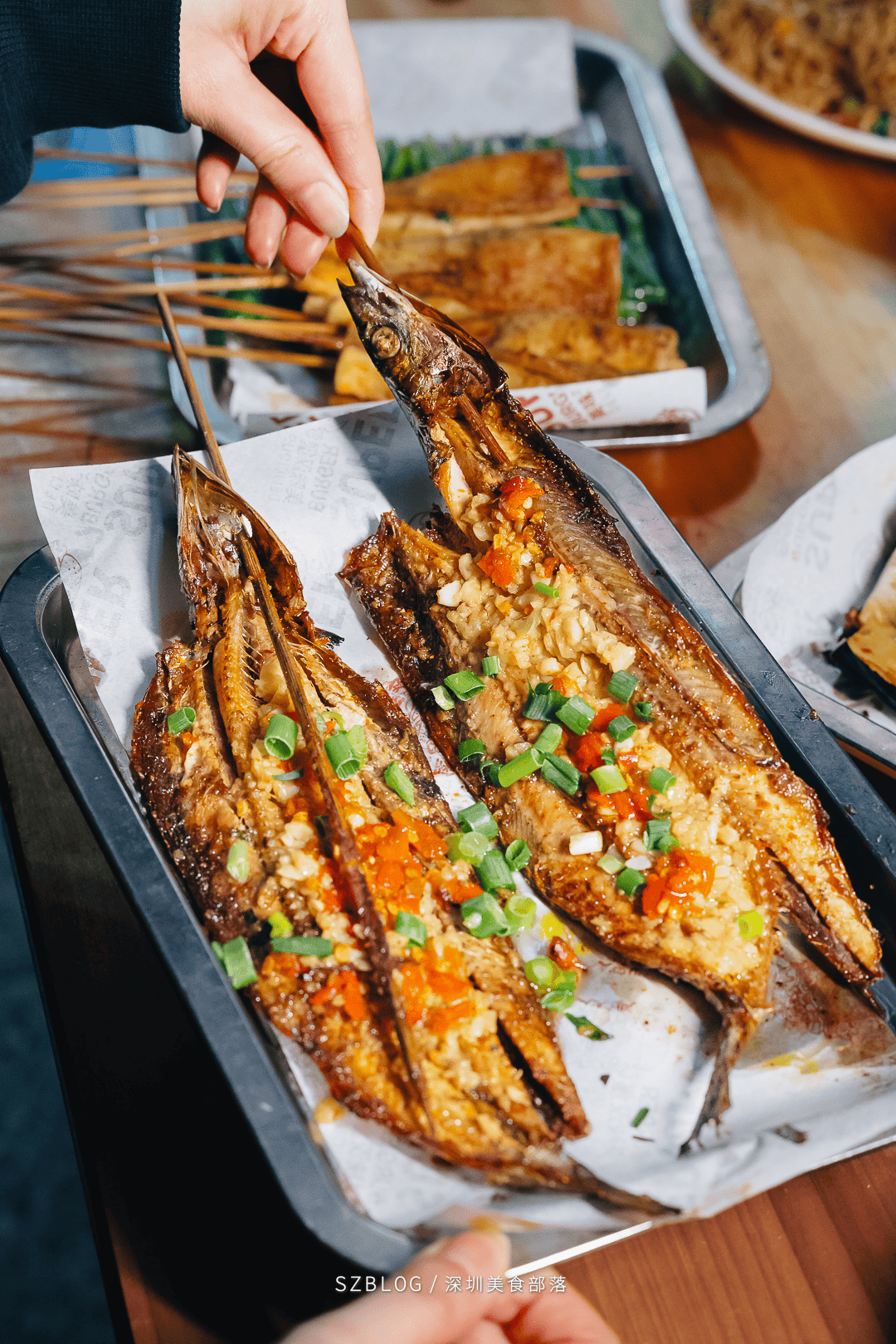 鱼皮烤得酥酥的,鱼肉吃起来是紧实的,调料就撒了点孜然和辣椒粉,吃着是海鲜本身的鲜味。
