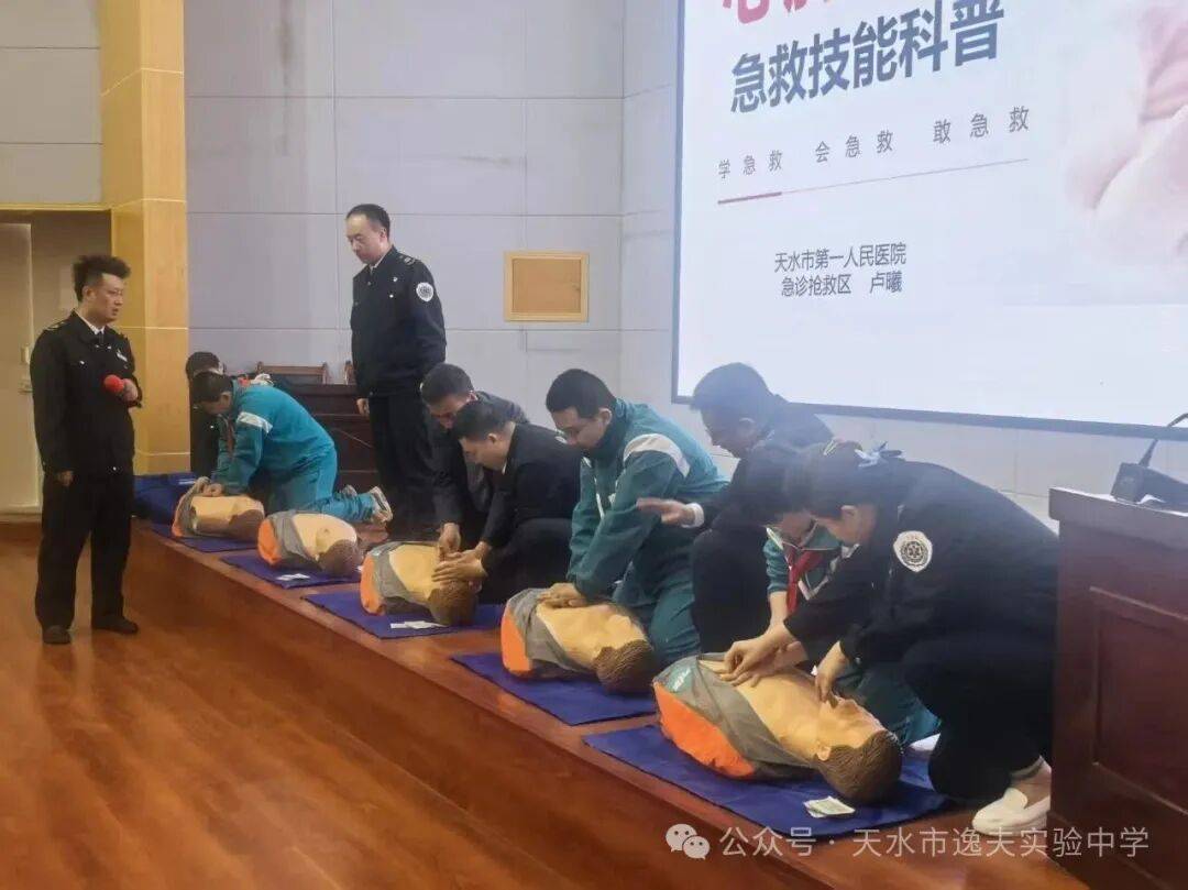 为增强师生应急救护能力,筑牢校园安全防线,4月8日下午,市逸夫实验中学联合天水市第一人民医院急诊医学科及儿童保健科专家团队,共同举办了“守护生命‘救’在身边”急救技能实践培训活动。校领导、教职工及学生代表共200余人参加。