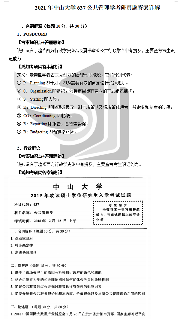 2018年中山大学829公共管理研究方法考研真题答案详解