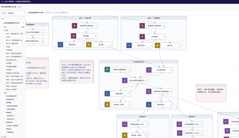 对于经管文法类学生,平台的低代码Canvas画布“非常友好”,让他们无需纠结于代码细节,直接通过拖拽式组件和预设流程完成数据分析与模型应用。而对于理工科学生,平台则提供了完整的Notebook式Python编程环境和镜像模组,支持他们深入算法实现。