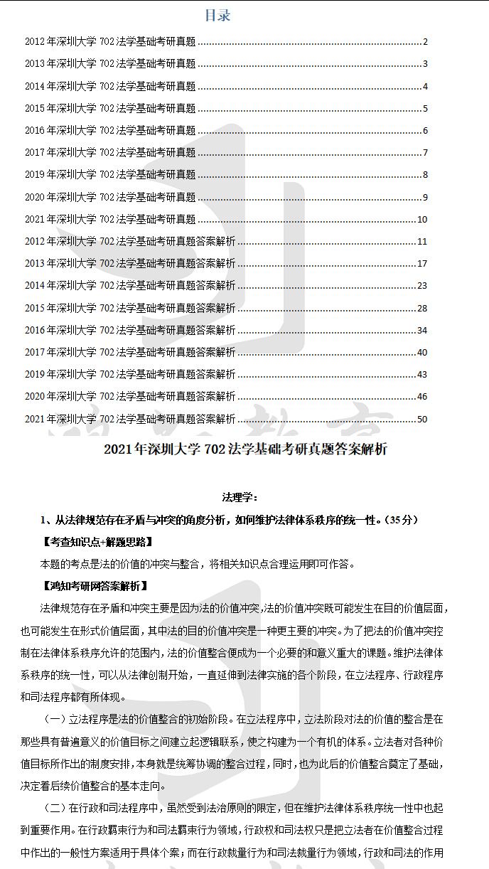 2012-2021年深圳大学702法学基础考研真题试卷与参考答案【不含18年】
