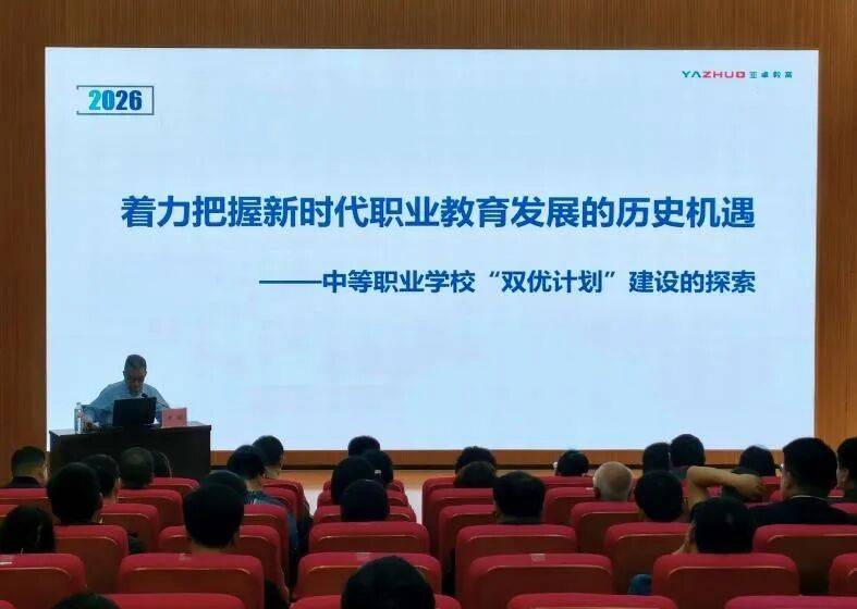 会上,李超以2026年度中职学校“双优计划”建设探索为主题,梳理了《教育强国建设规划纲要(2024——2035)》《职业教育法》等核心政策文件,详细解读了国家“双优计划”十大建设任务、七大遴选标准和“六维度”评价框架,强调各中职学校要以区域产业需求为驱动,深化职业教育教学关键要素改革,立足动态调整专业设置、科学设计课程组合、优化教材呈现形式、细化教师能力清单、建设产教融合实习实训基地5大任务,推动人才培养由传统知识传授向综合能力提升转变。