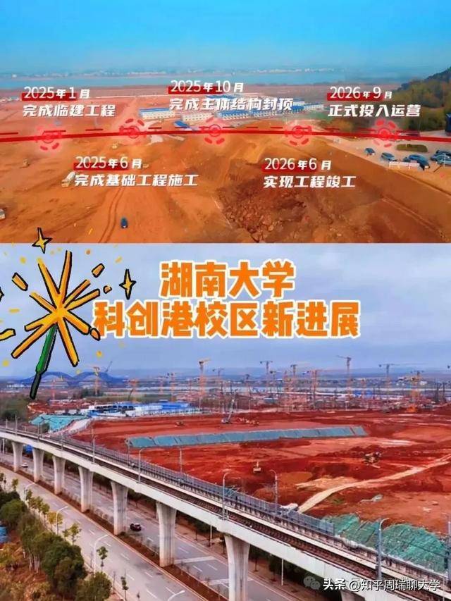 湖大的布局很快:2023年12月开工,2025年12月全面封顶,2026年9月投用。两年多的时间,从图纸到现实,这种“湖大速度”背后是湖南省和长沙市的全力支持。毕竟,湖大是湖南仅有的三所985之一,是湖南高等教育的“门面”。让湖大“长大”,就是让湖南的科创能力“长高”。