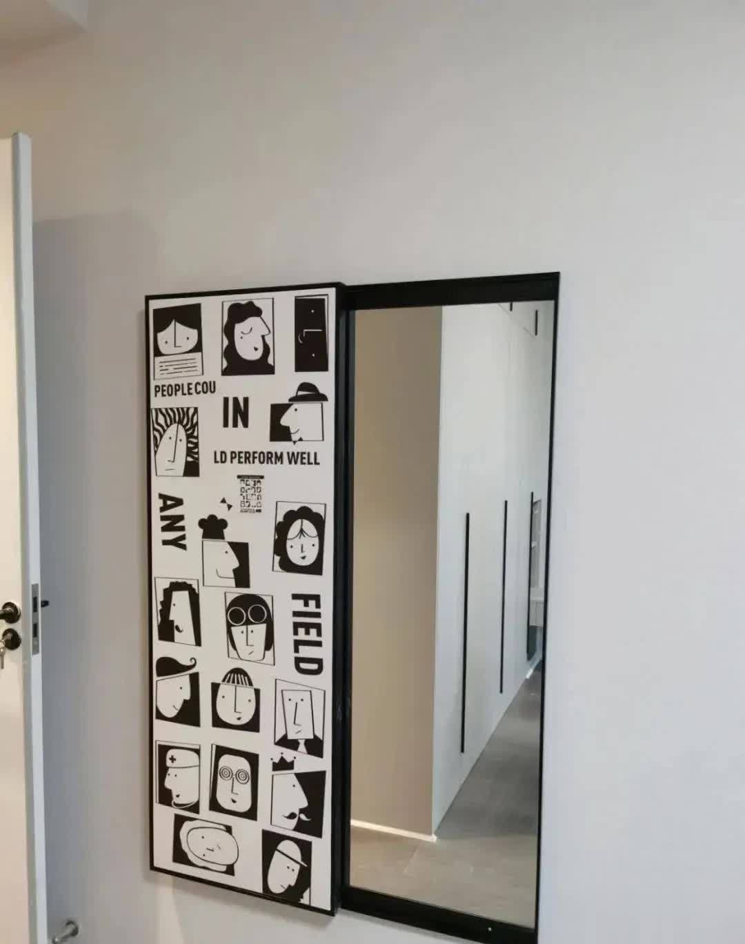 4.单独设置一面隐藏式轨道镜子,外表看似挂画,推拉之间变身为镜。