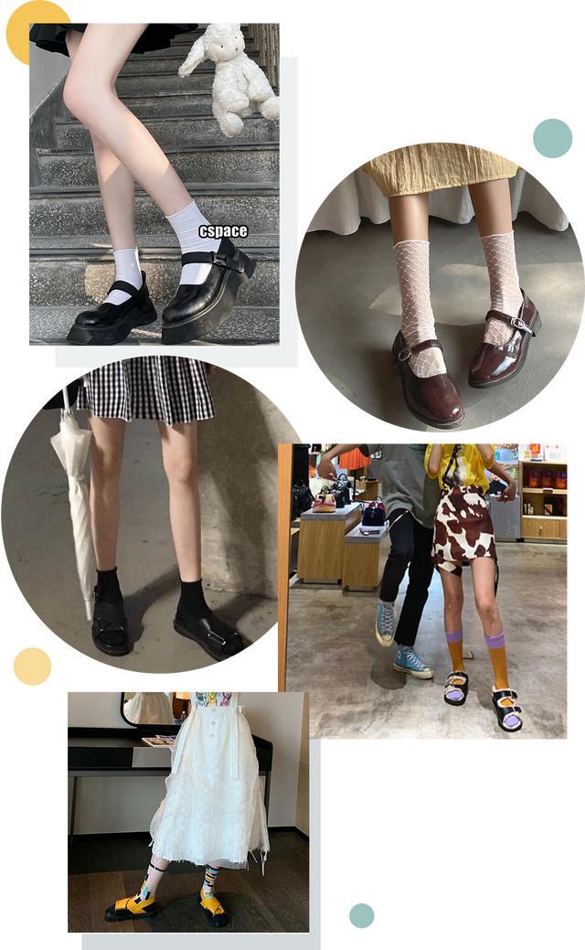 颜色混搭的印花袜配上小皮鞋