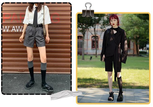 配上黑色中筒袜的造型