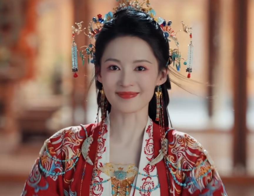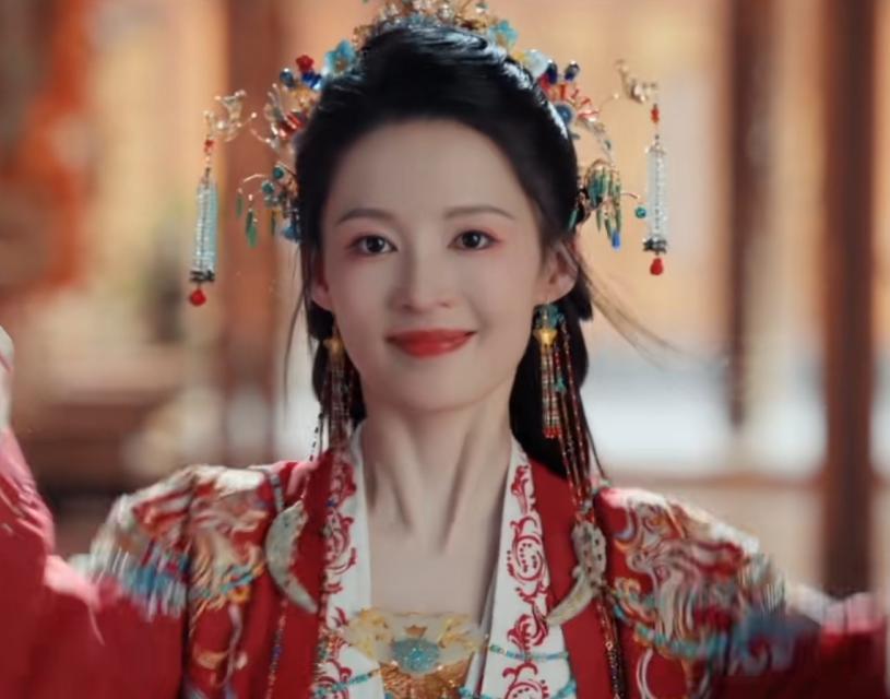 这次饰演被逼和亲,命运凄苦的凤戏阳,上一秒步步生花、贤良淑德。