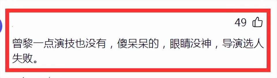 有网友直言,“曾黎一点演技也没有,傻呆呆的,眼睛没神,导演选人失败”。