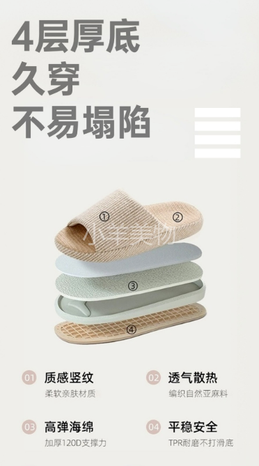 光鞋底就有4层玄机,厚实、有韧性、回弹力嘎嘎好,在家里图的就是一个舒舒服服,客人来穿,也是体体面面。