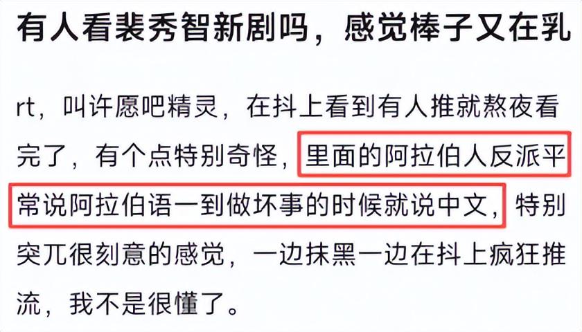 一个韩国人主演,阿拉伯人当反派的新剧,无论从那个角度来看都跟中国扯不上关系,可他们就是偏要加入抹黑中国的剧情。