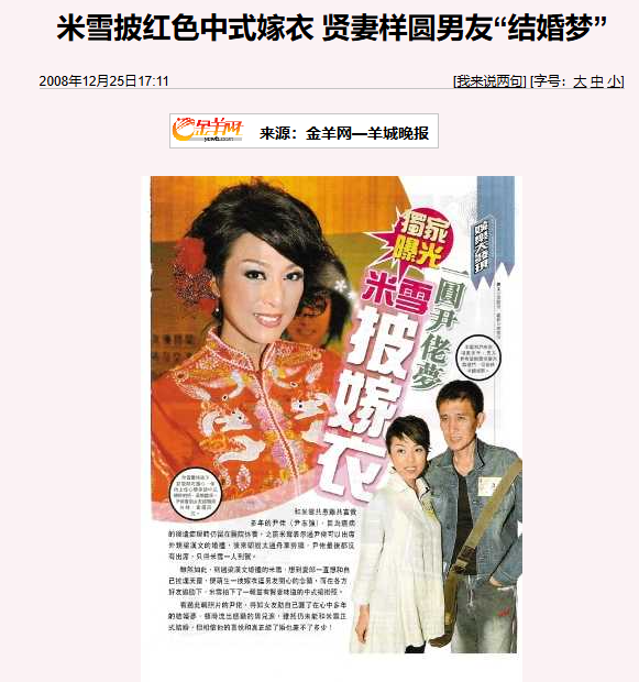 2008年米雪还拍了一辑广告,穿上中式褂裙,拍完她兴奋地把照片洗出来给男友看,让他感受“结婚”的喜悦。