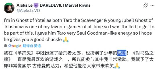 越南演员Aleks Le宣布,自己在《羊蹄山之魂》中饰演拾荒者太郎和少年Jubei两位角色。他表示,前作《对马岛之魂》一直是他非常喜欢的游戏之一,所以能参与《羊蹄山之魂》让他非常激动,希望自己饰演的角色能让玩家们会心一笑。
