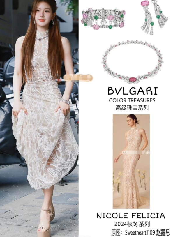 而且很多套造型都是赵露思跟品牌方借来的,比如婚礼戏份的婚纱、出席晚宴穿的晚礼服,可都是高奢定制款。