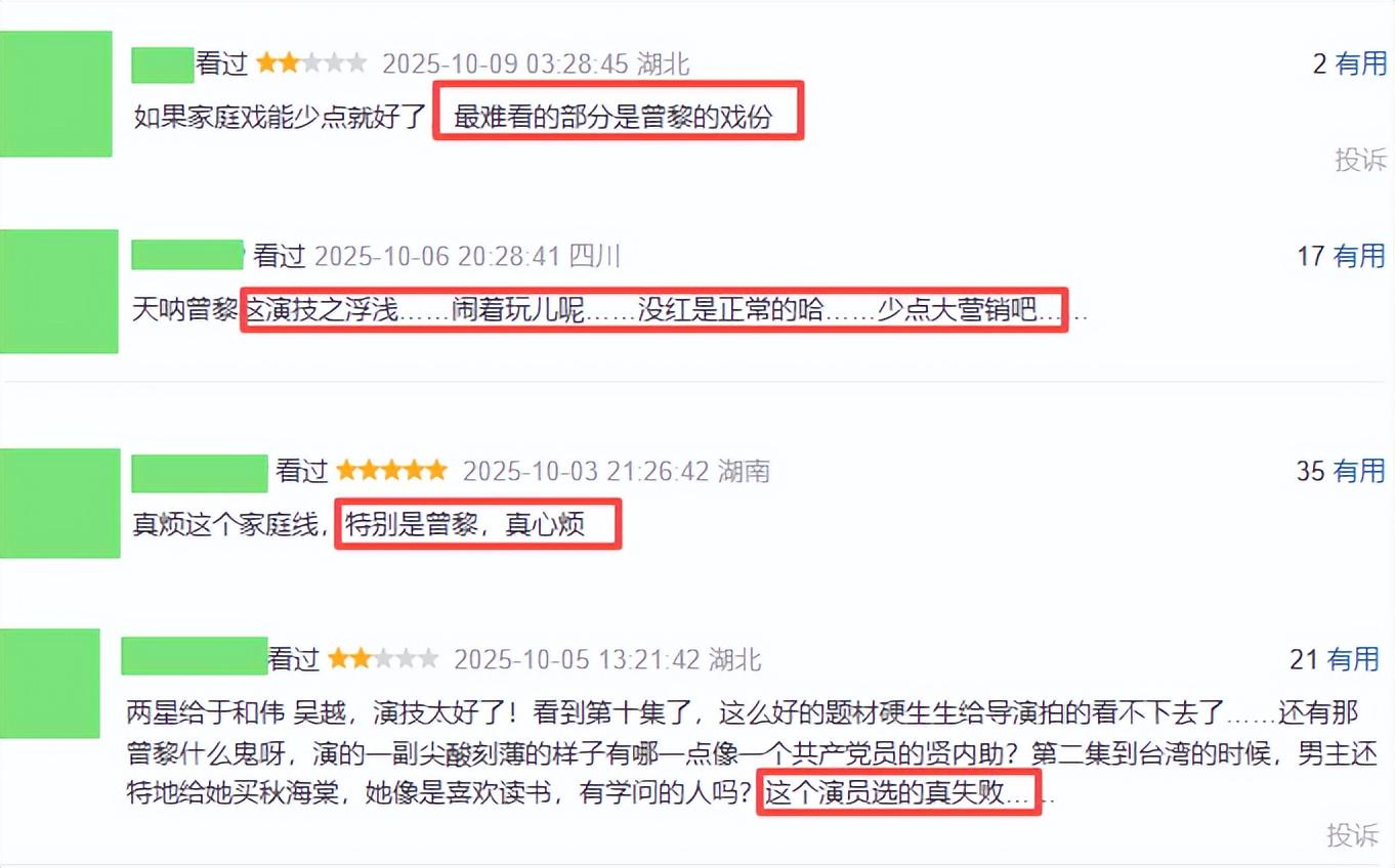 但是在剧中,饰演王碧奎的曾黎却被吐槽,成为了不少观众反感家庭线、感情戏的关键原因。