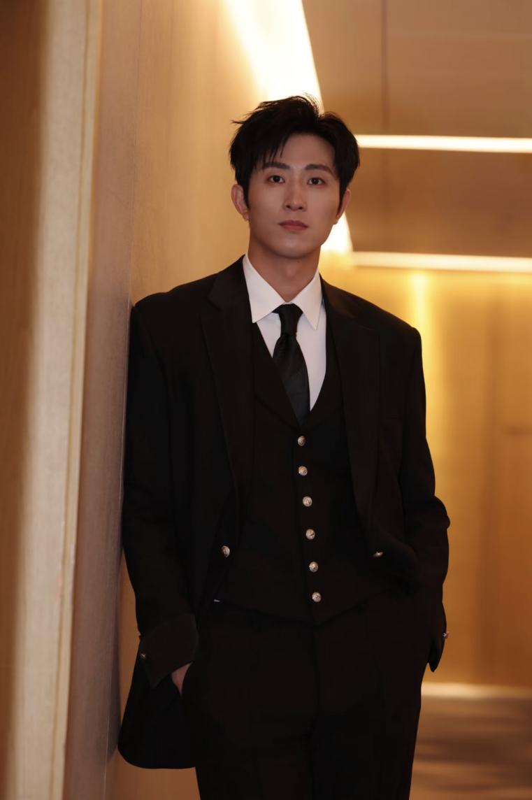 在《昭然赴礼》中,他带着无框眼镜、穿着一身板正笔挺的西装亮相,188cm的身高加持,模特的头肩比和身长比,活脱脱一个不容置疑的商界精英。