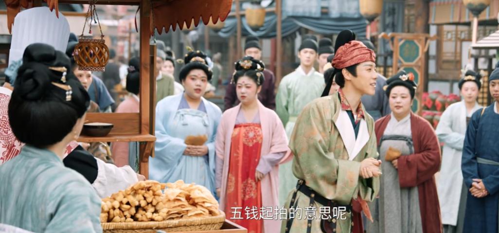 而且还利用了”拍卖“方式卖饼,加上沈家老大沈韶杰(昌隆 饰)的吹捧,可给那群古代人吸引住了。