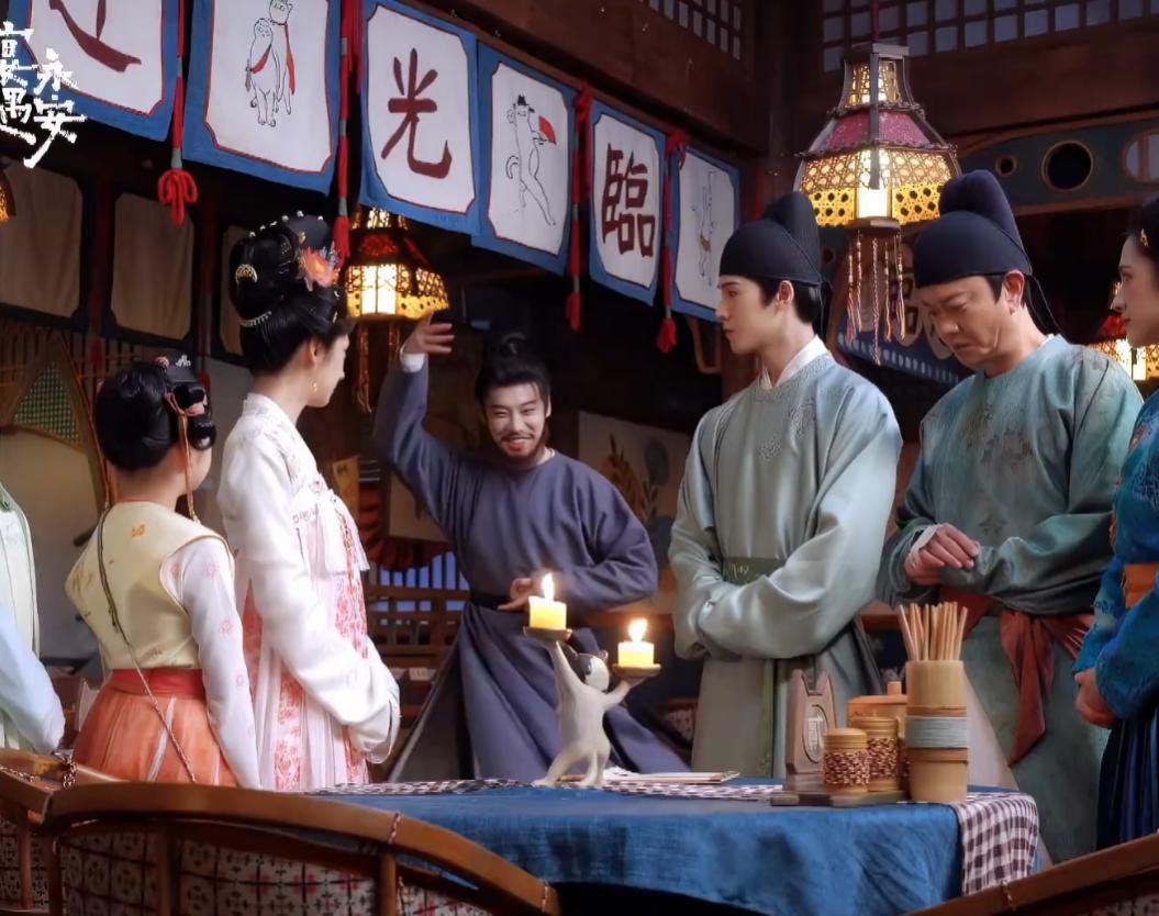 剧组以《清明上河图》为蓝本复原的永安东市,青石板路的纹路、酒肆幌子的材质、胡商摊位的陈设,都力求还原中晚唐市井生态。