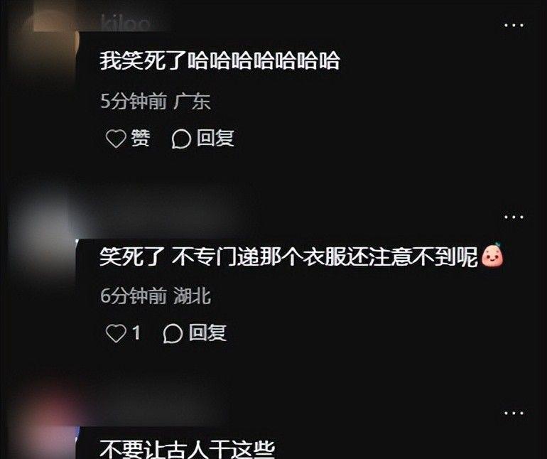 坐在椅子上的时候有个褶皱鼓得超大,当经纪人给他递上衣服的时候,他的表情一愣,瞬间脸红,满脸都是尴尬。