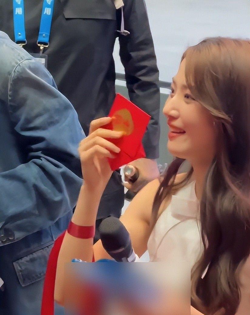 全程没怎么笑开,偶尔笑一下,就连给观众发红包的时候,笑容也像是硬挤出来的。