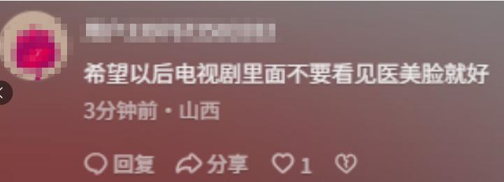 其实观众真不是挑剔,主要是不喜欢在正剧里,尤其是央视剧中看到不自然的 “医美脸”,一看到就光想出戏,还咋沉下心看剧情呢?尤其这种历史年代剧,科技感满满的脸,跟那个年代也不和谐啊。