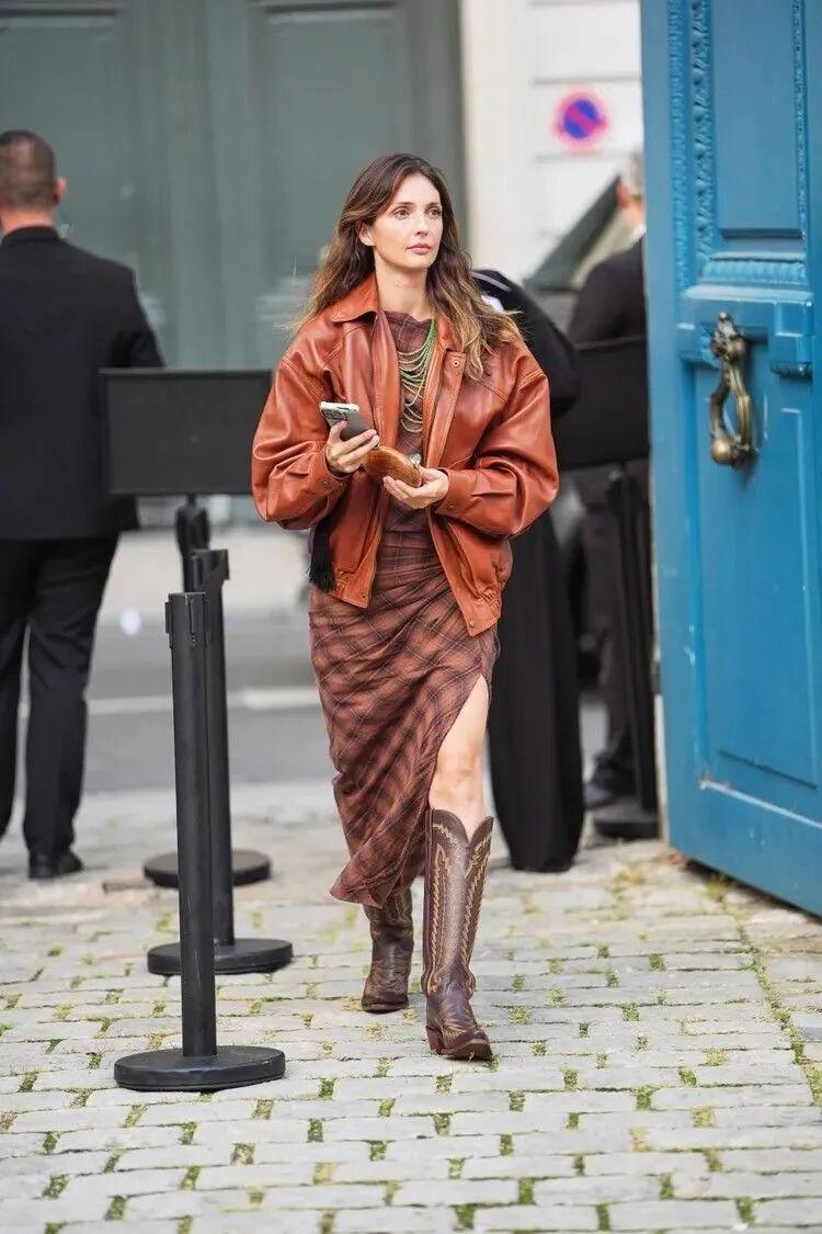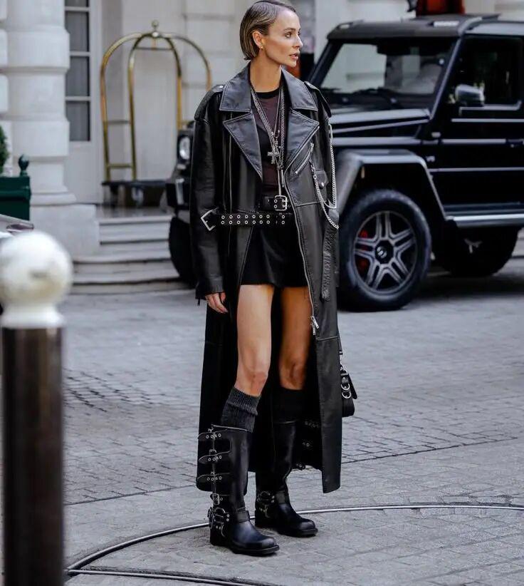 穿皮靴时,应关注线条的延续,靴筒与裤装或裙摆的衔接,是整体造型的关键。
