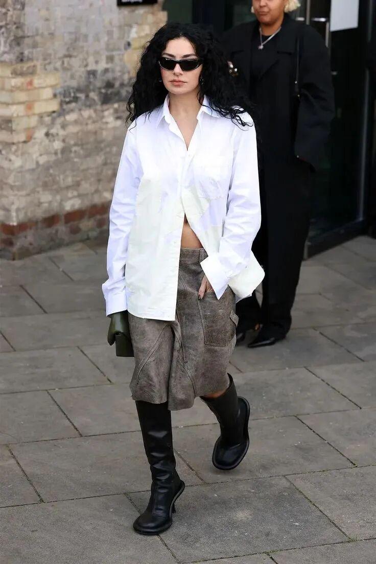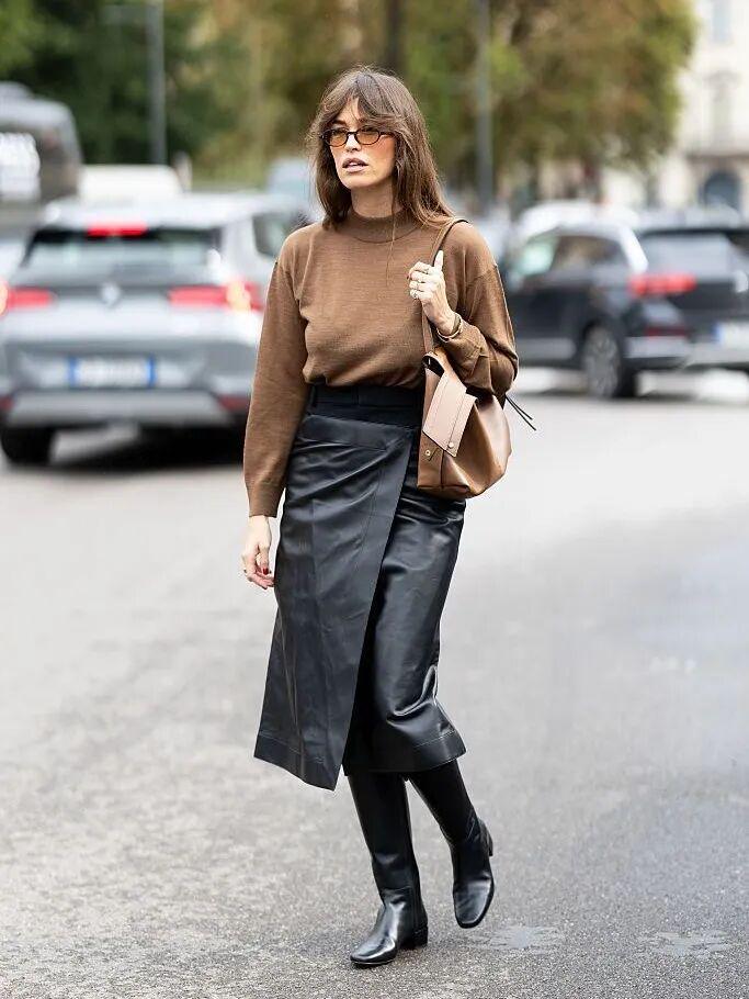 搭配上,皮裙适合搭配宽松的针织或羊毛上衣,让造型更柔和。