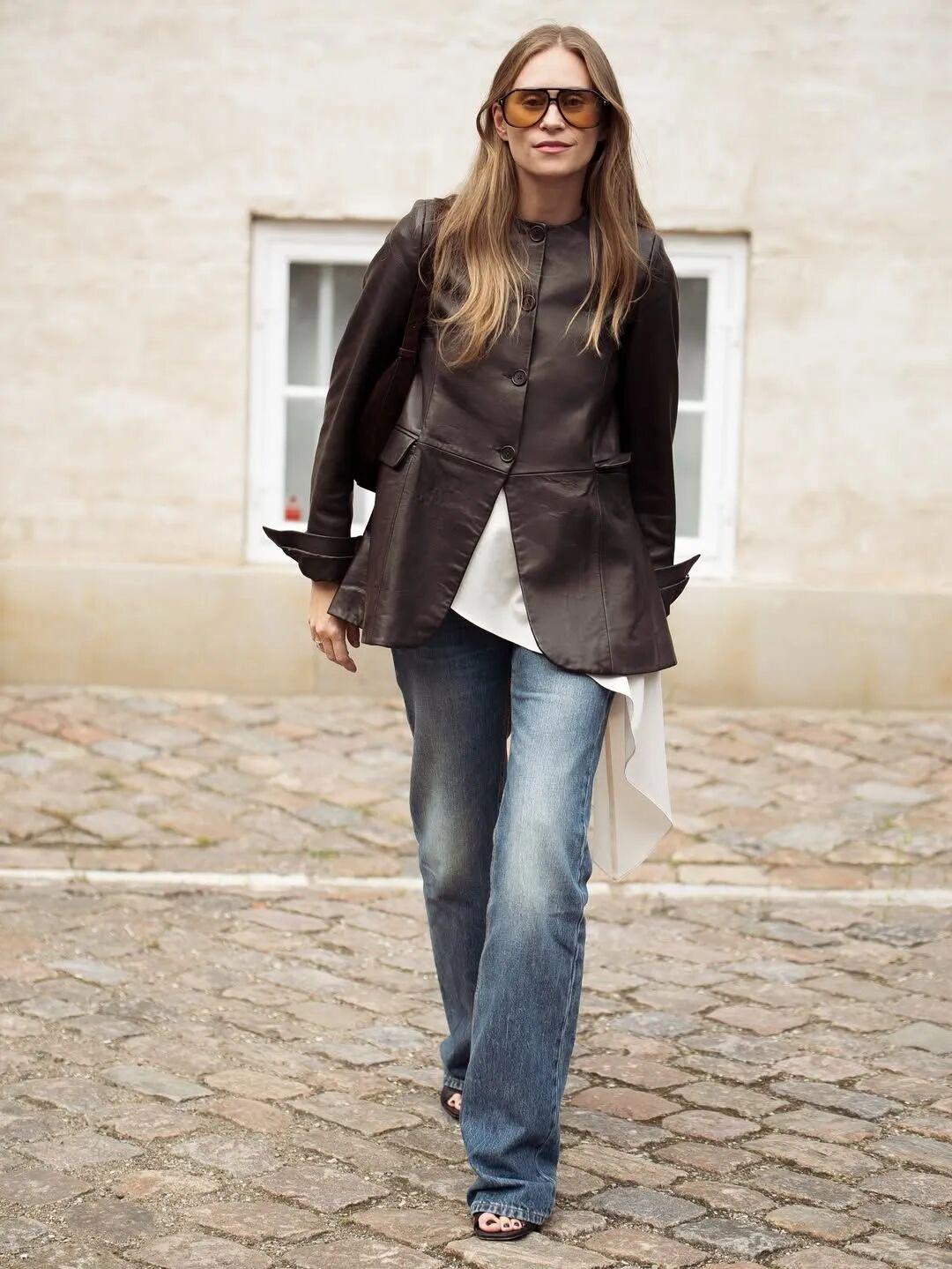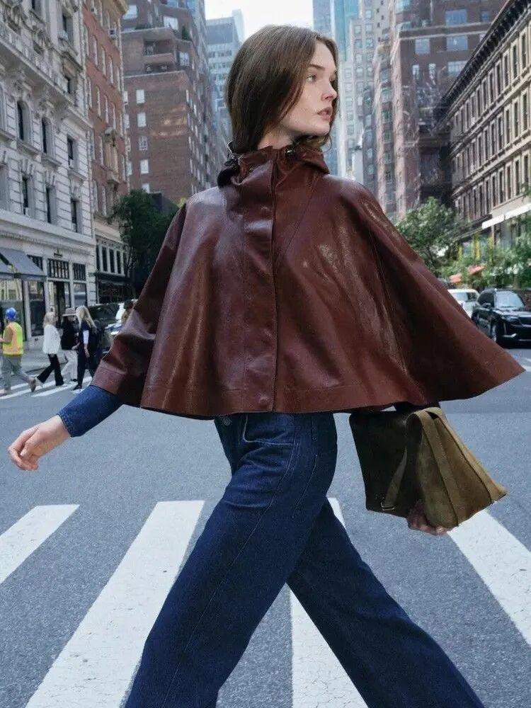 内搭轻针织或简洁白衬衫,下装可配高腰牛仔裤或顺色半裙,让皮质的硬挺与面料的柔软形成对话。