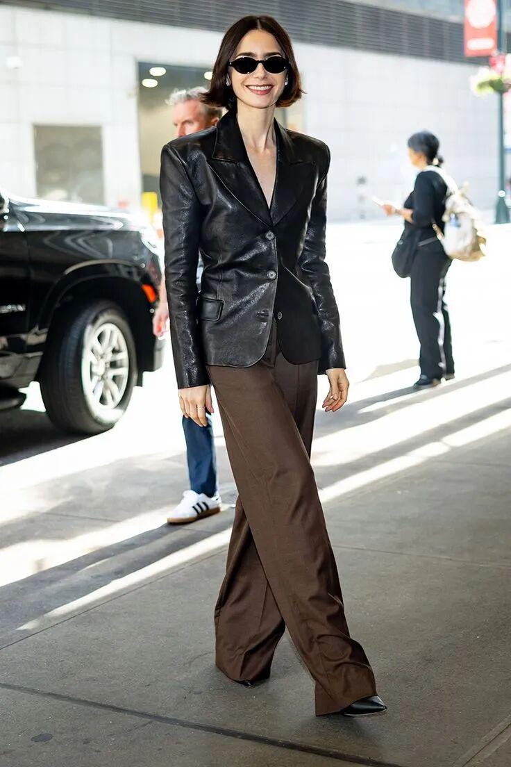 因为皮革西装延续了西装的结构感,却因皮革的材质而更具存在感。皮面的光泽让线条更鲜明,也让整个人的气场更稳定。