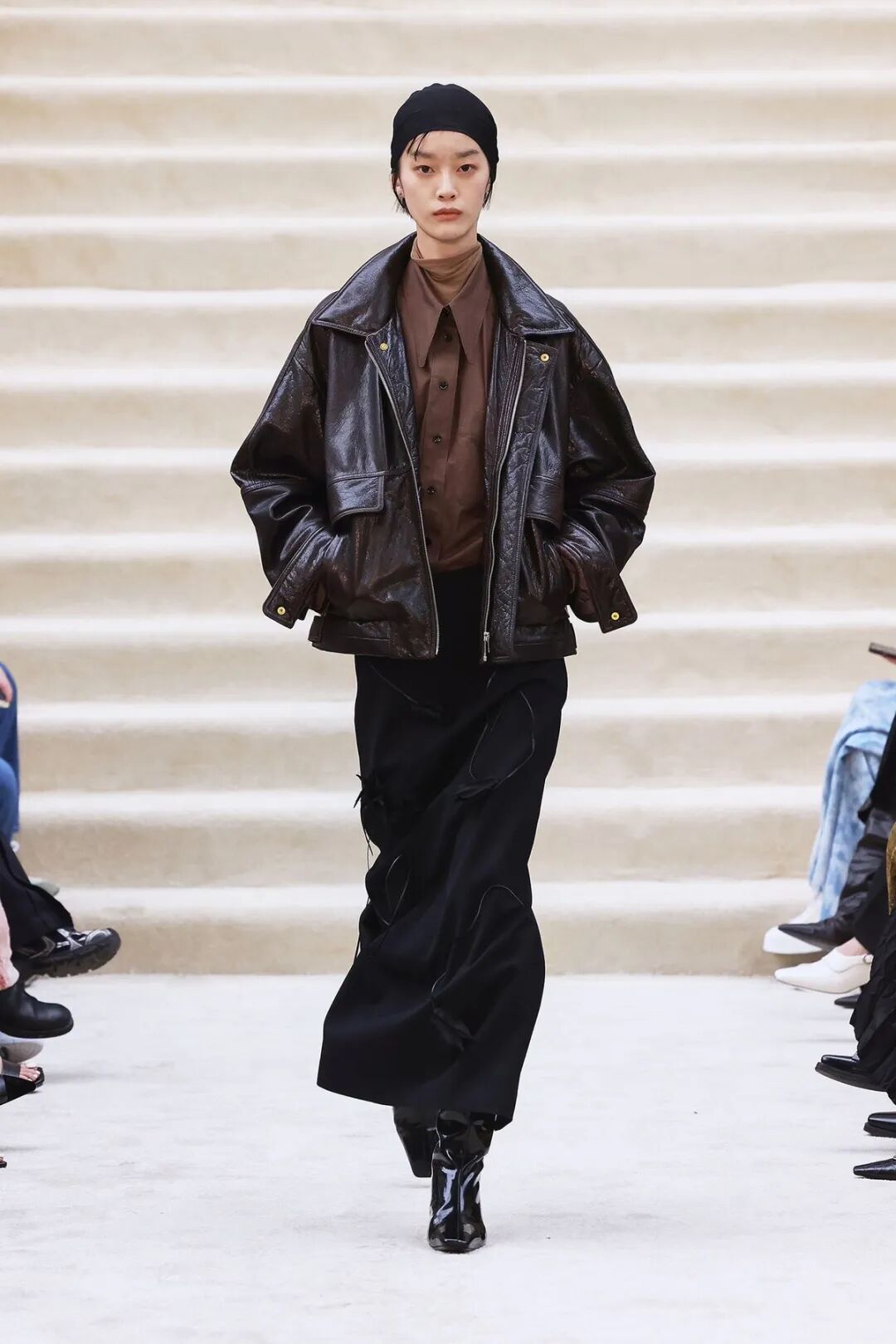所以,挑选皮夹克时,越简单越好穿,越经典越时髦:一件剪裁合身的皮夹克,线条利落,结构干净。