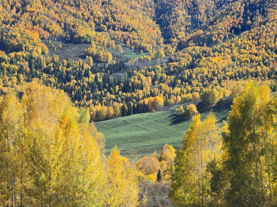 Ashley:错峰在国庆前一周出发北疆,虽然天气时有阴天,但非常幸运在去阿禾公路的那一天有阳光,光线超美!回程当天看天气预报说国庆会下雪封路,感觉我们这趟超幸运。▼