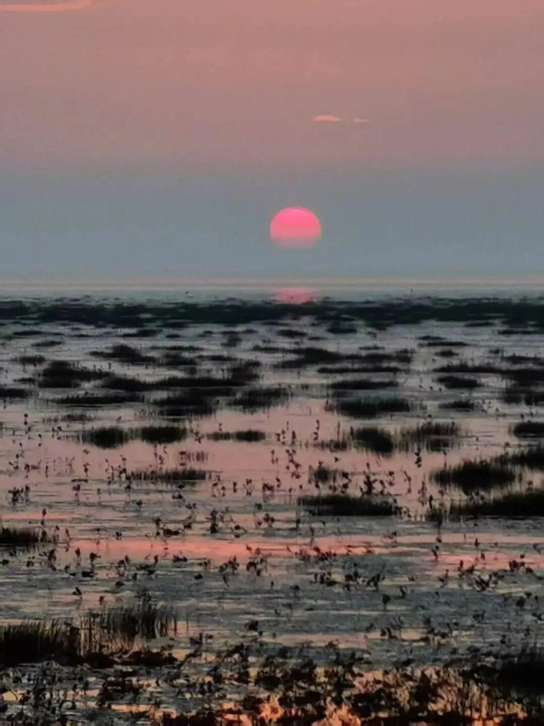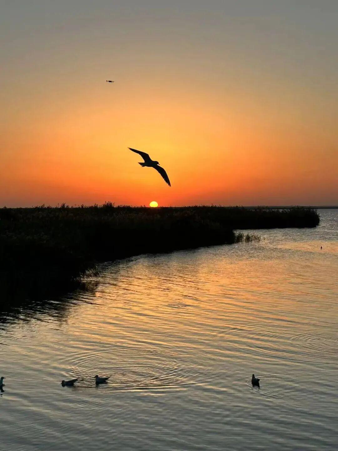 Wxh:额济纳旗居延海的日出和海鸥,简直绝了。▼