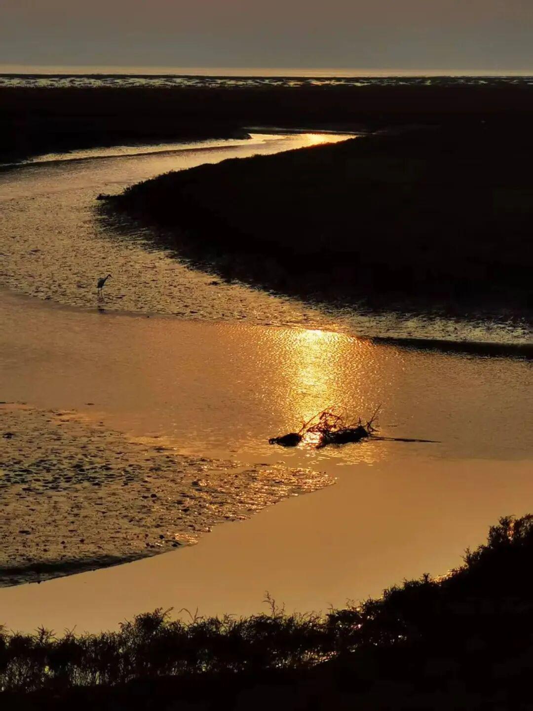 明镜:辽宁盘锦,红海滩的日落。▼