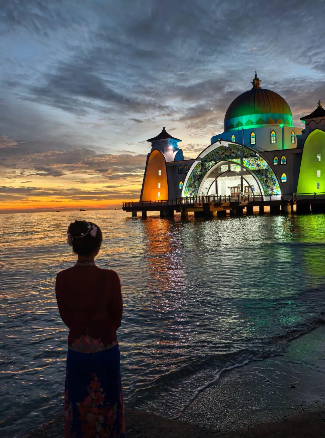 娥娜丹青:马六甲海上清真寺,绝美黄昏与虔诚祈祷的吟唱。▼