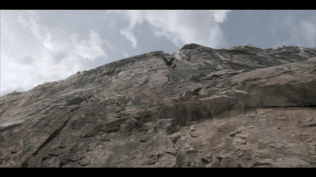 剧一开场,两个攀岩玩家在千米高崖上玩命攀登。